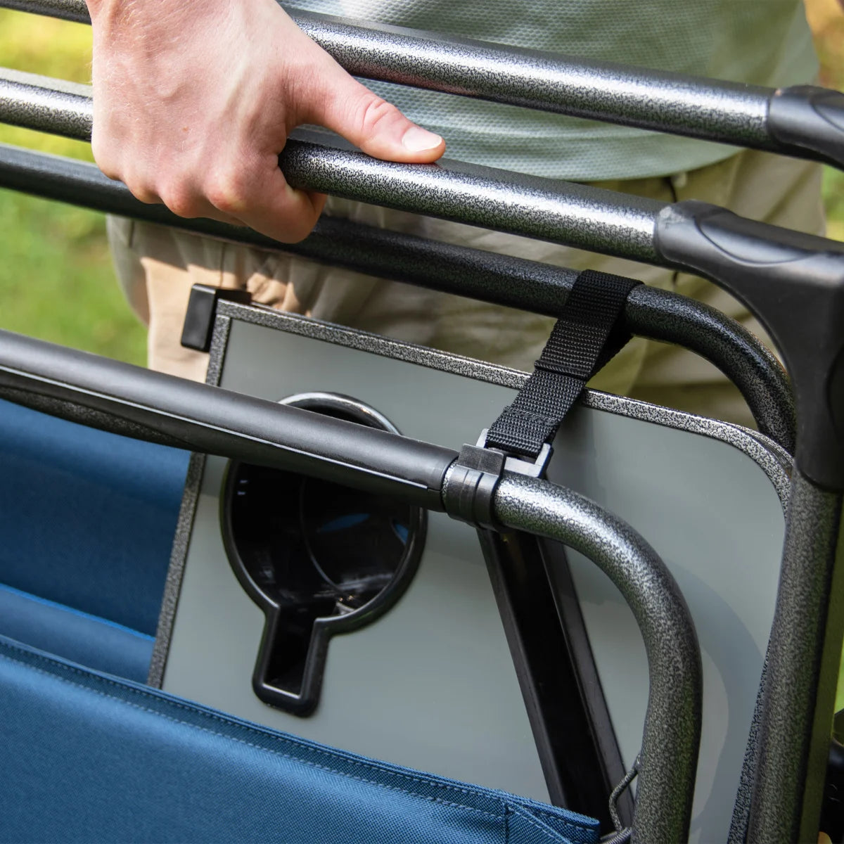 • Table d'appoint rabattable avec porte-gobelet et porte-téléphone