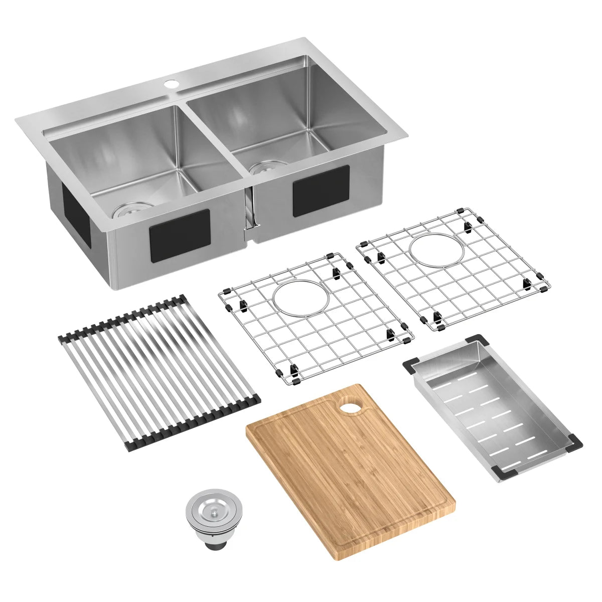 L'évier à cuve double comprend :