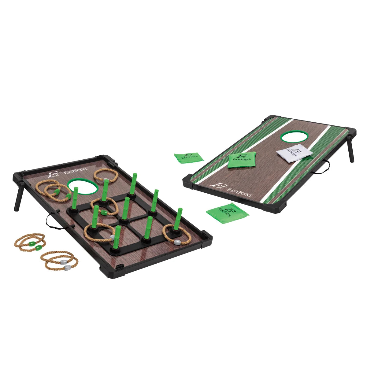 - Signé EastPoint® Sports, l’ensemble jeu de poches, jeu de tic-tac-toe avec poches et jeu de lancer d’anneaux est parfait pour divertir toute la famille.