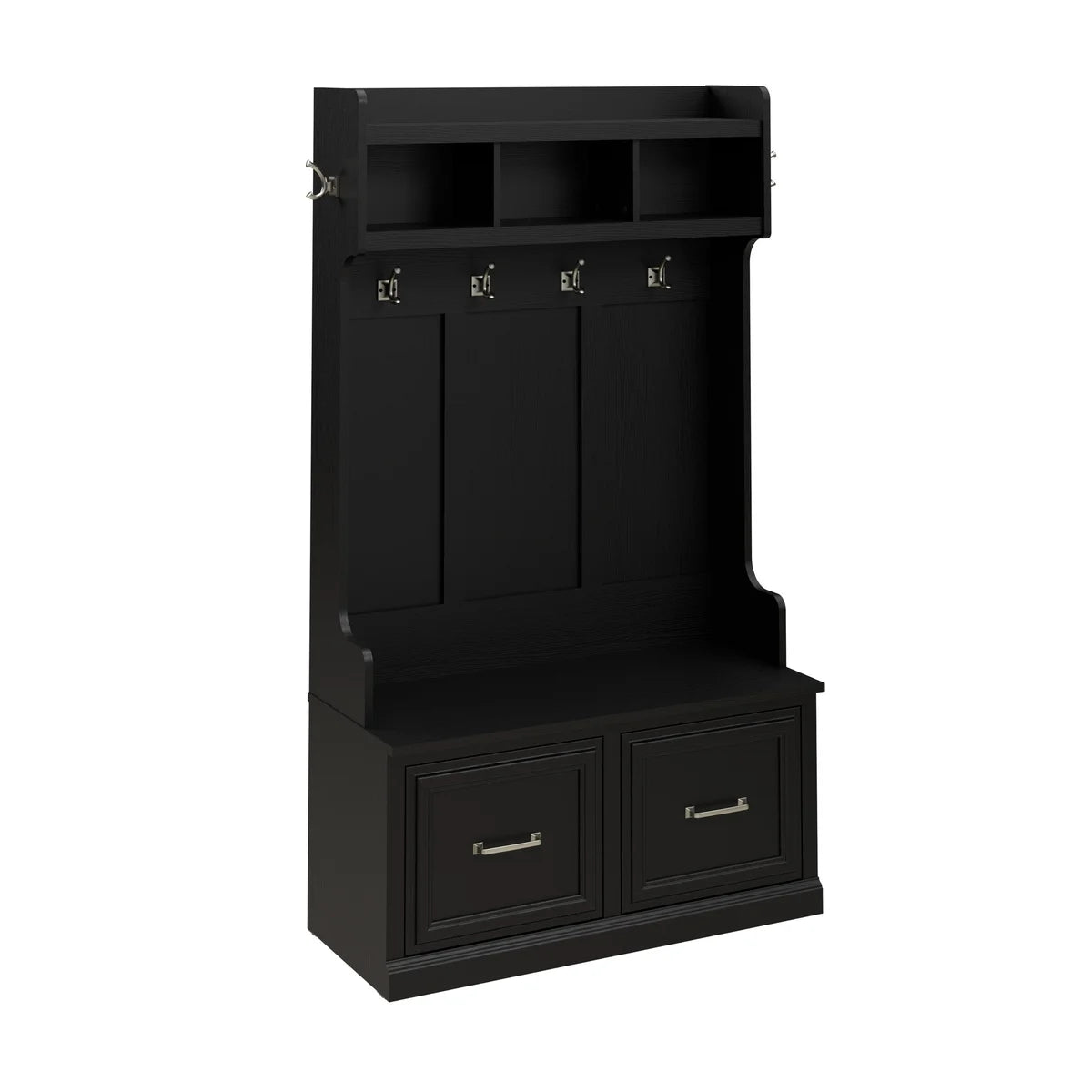 - Trois compartiments ouverts et une longue étagère supérieure sont parfaits pour les gants, les clés et autres accessoires