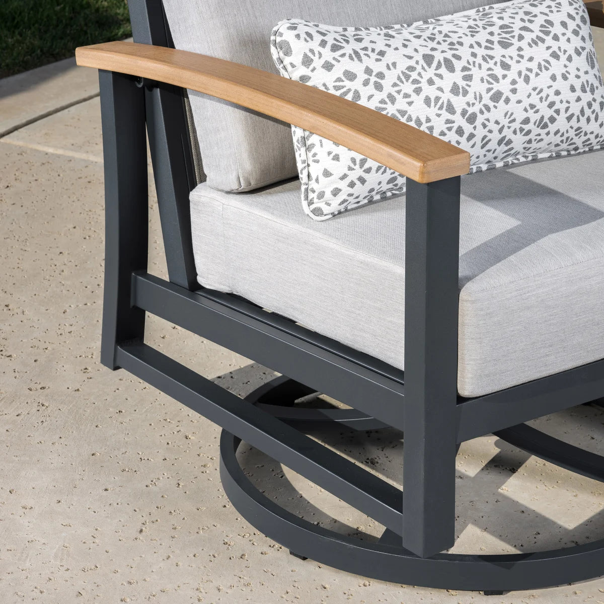 - 2 Fauteuils de détente berçants et pivotants avec coussins en tissu outdura