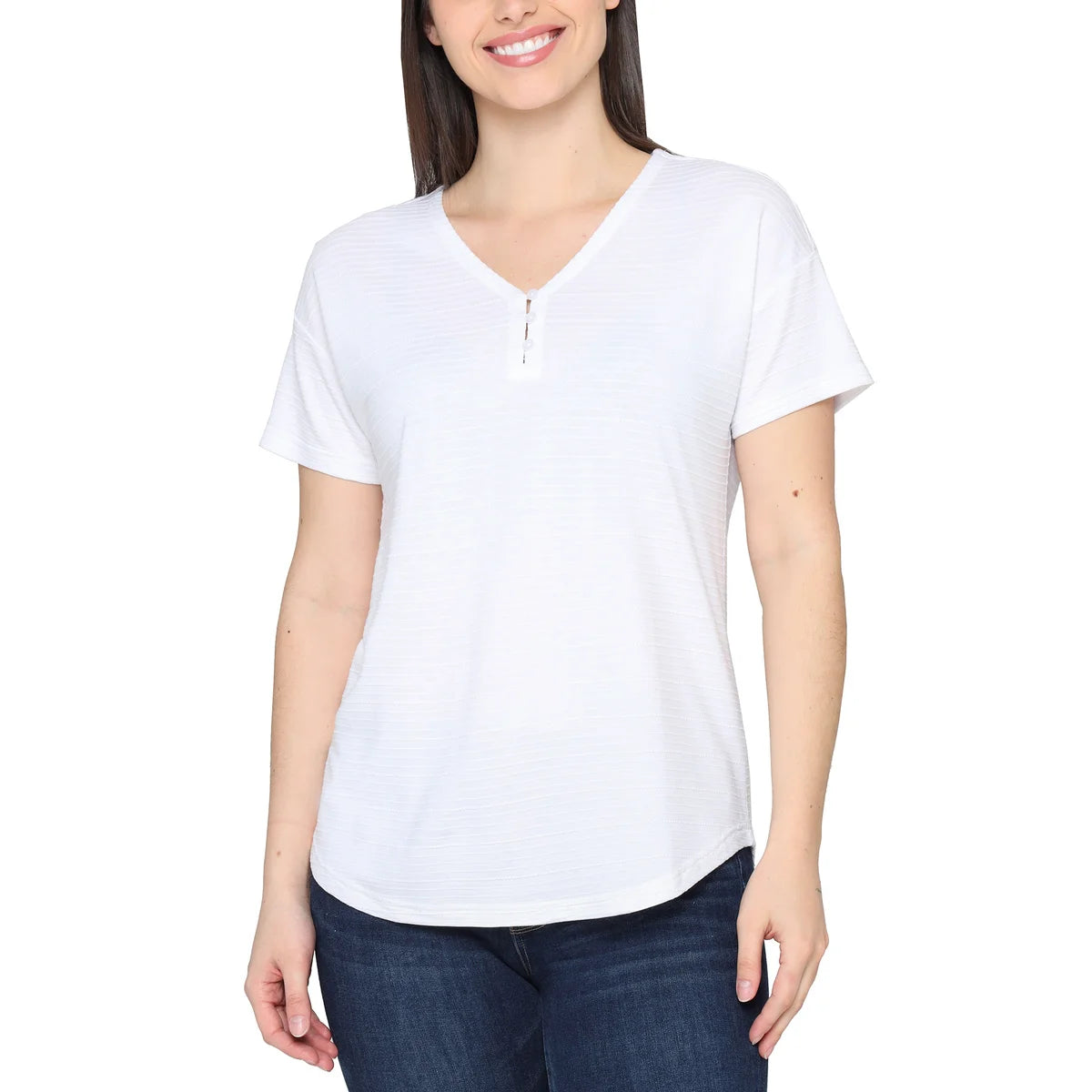 • Encolure en V à 3 boutons