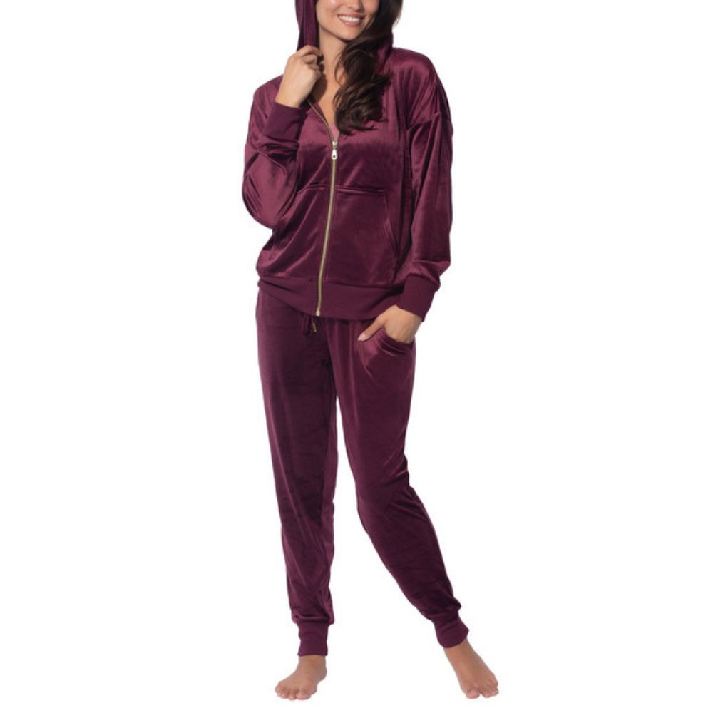 • Ensemble haut à capuchon et à glissière et pantalon d’entraînement en velours