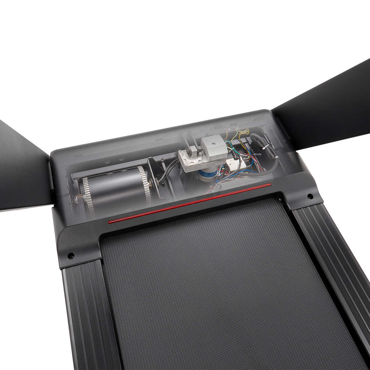 - Les roues de transport intégrées facilitent le déplacement du tapis roulant dans votre maison